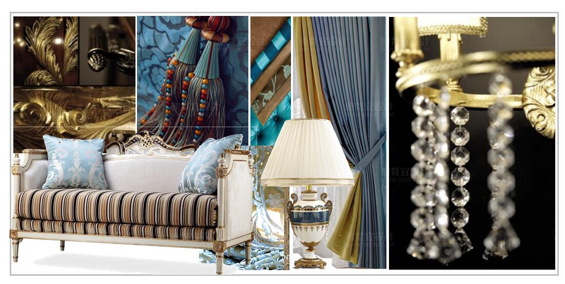 線條優美的家具、水晶吊燈、金屬藝術品的運用讓空間的品質感、氣勢感、時尚感更加強烈,傳遞出顯法式高貴典雅。